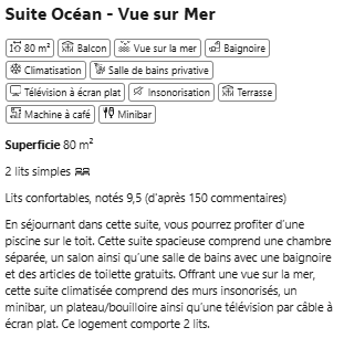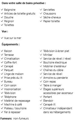 Cette suite de l’Hôtel Fariones associe technologie de pointe et prestations de luxe 5 étoiles : climatisation, insonorisation, télévision à écran plat, machine à café, bouilloire et minibar offert. Chaque détail est pensé pour le bien-être du client, de la carte d’oreillers au peignoir et aux chaussons, sans oublier un service de room service efficace et attentionné. Pouvant accueillir jusqu’à trois adultes, elle est idéale aussi bien pour une escapade romantique que pour un séjour reposant en couple ou avec un accompagnant.